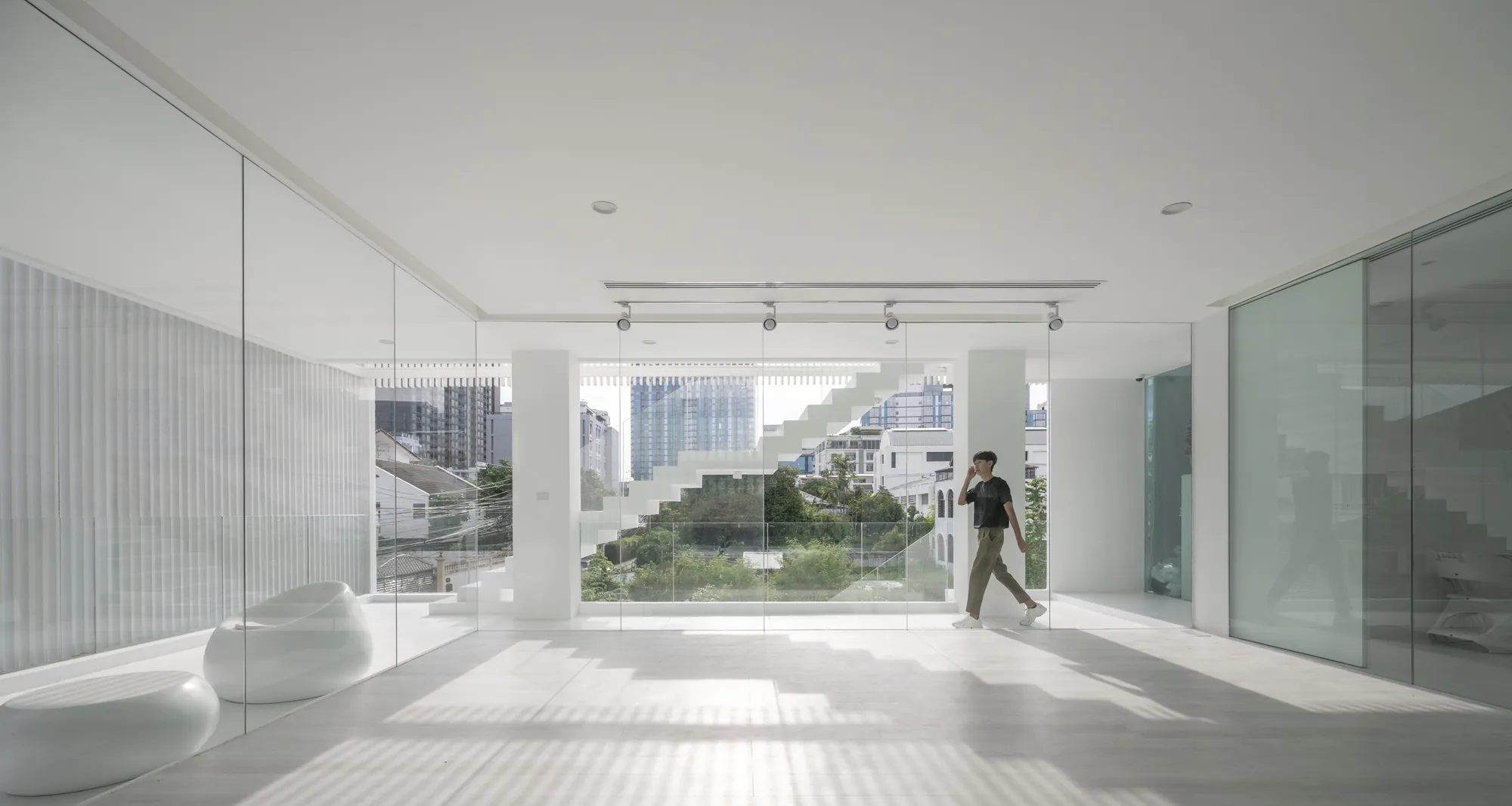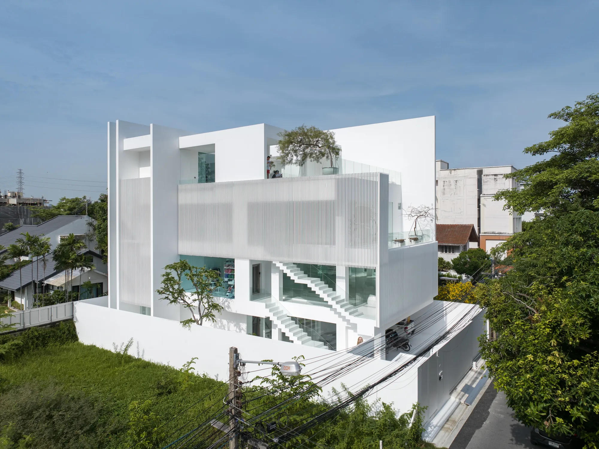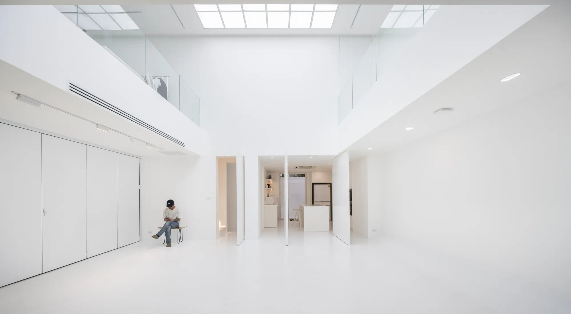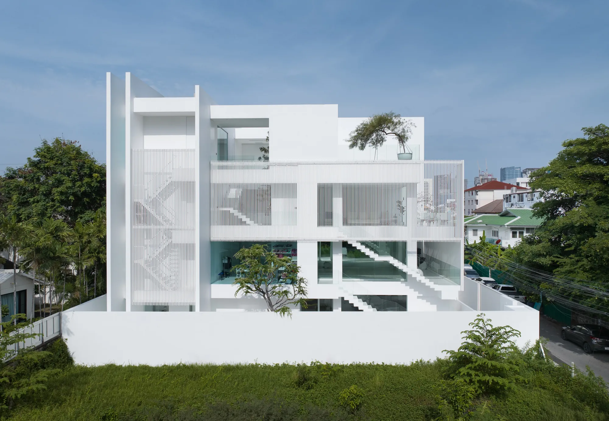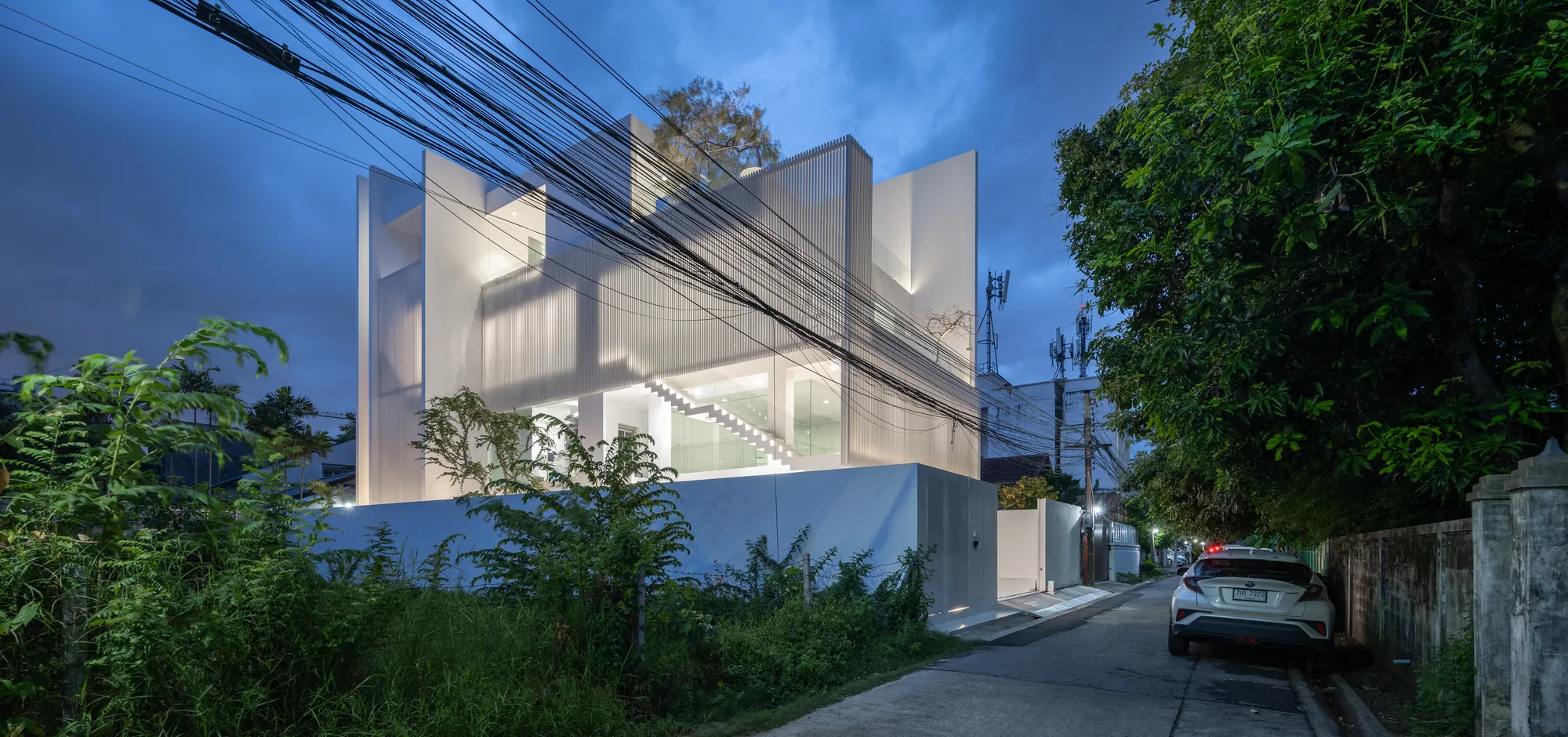 CANVAS HOUSE is located in Soi Lat Phrao 26 surrounded by high-rise condominiums. The property is situated on 360 square meters of land and has a living area of 900 square meters.