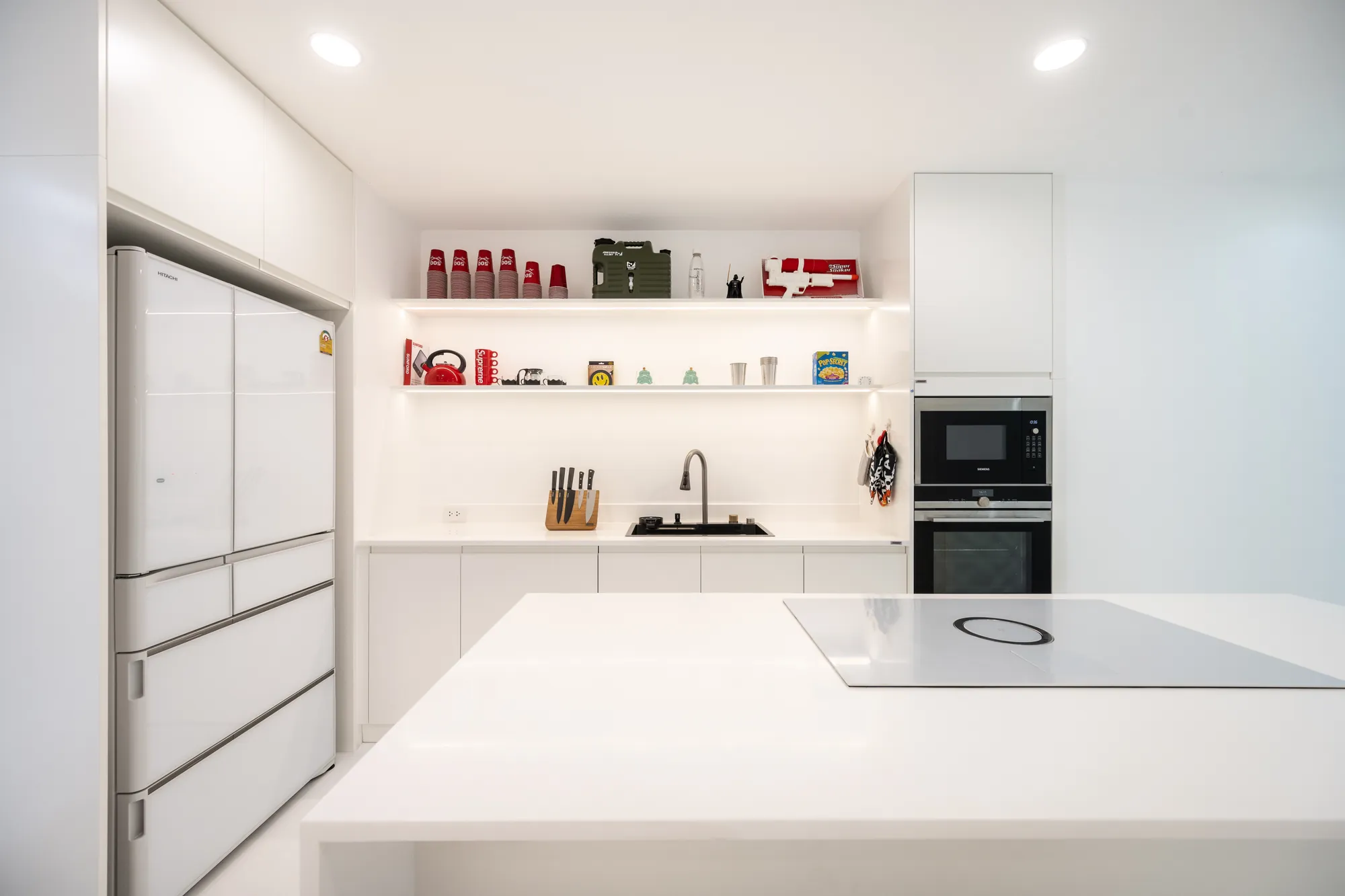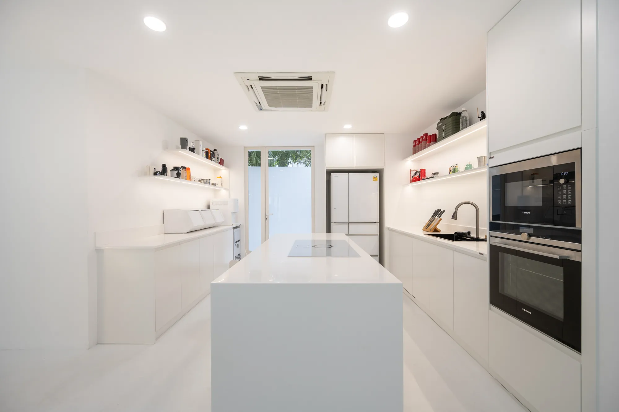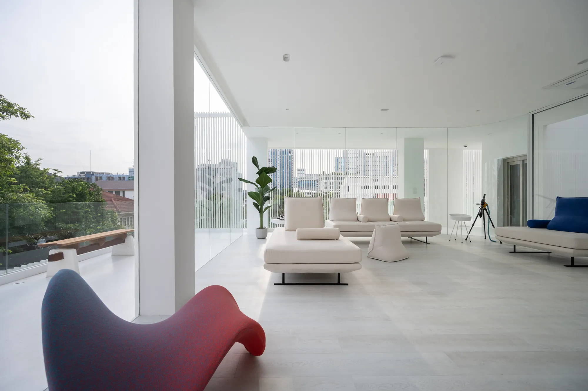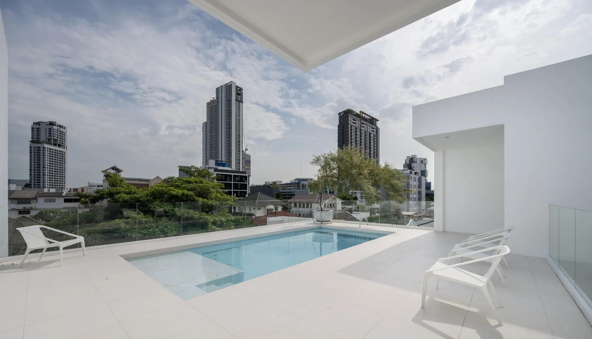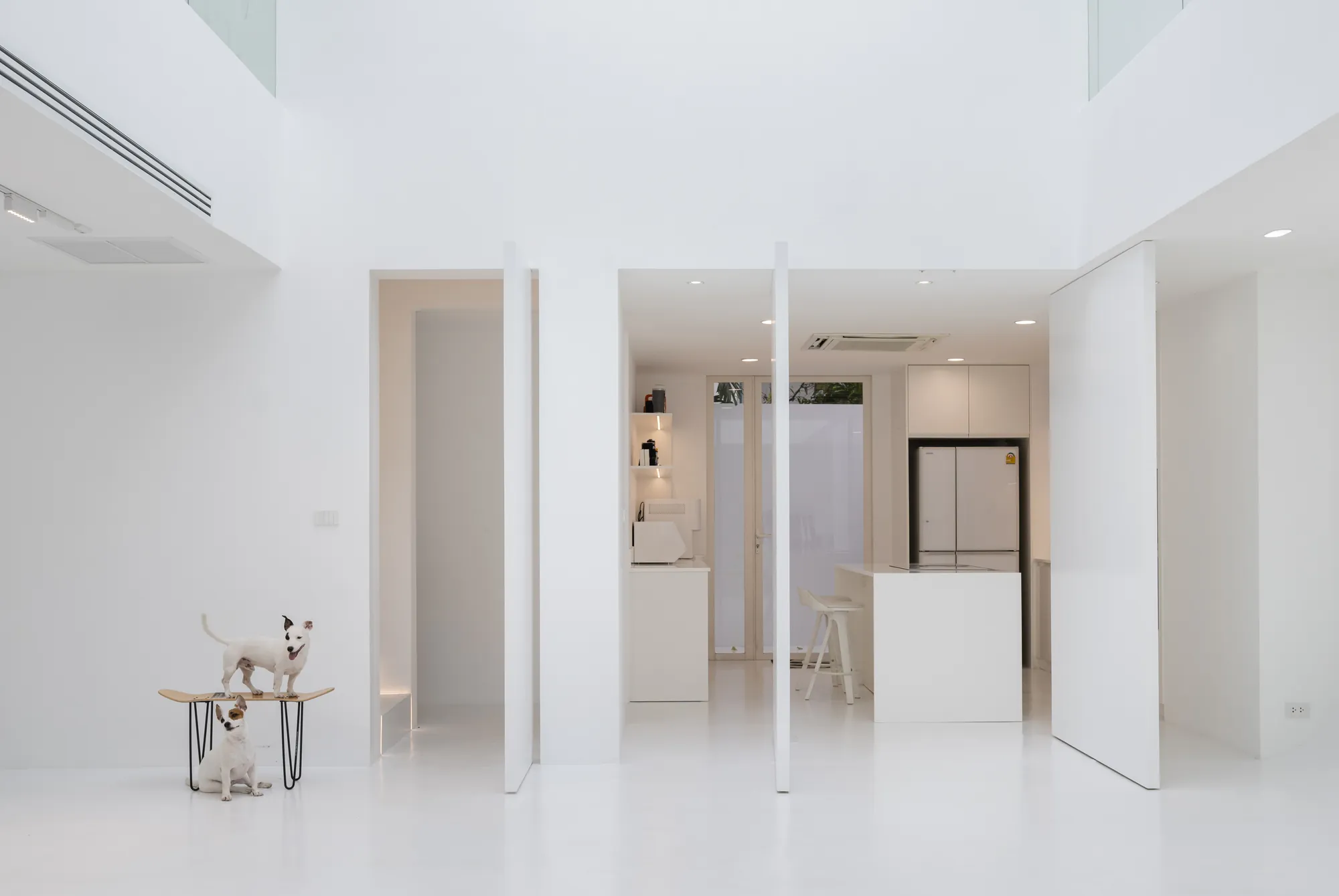 CANVAS HOUSE is located in Soi Lat Phrao 26 surrounded by high-rise condominiums. The property is situated on 360 square meters of land and has a living area of 900 square meters.