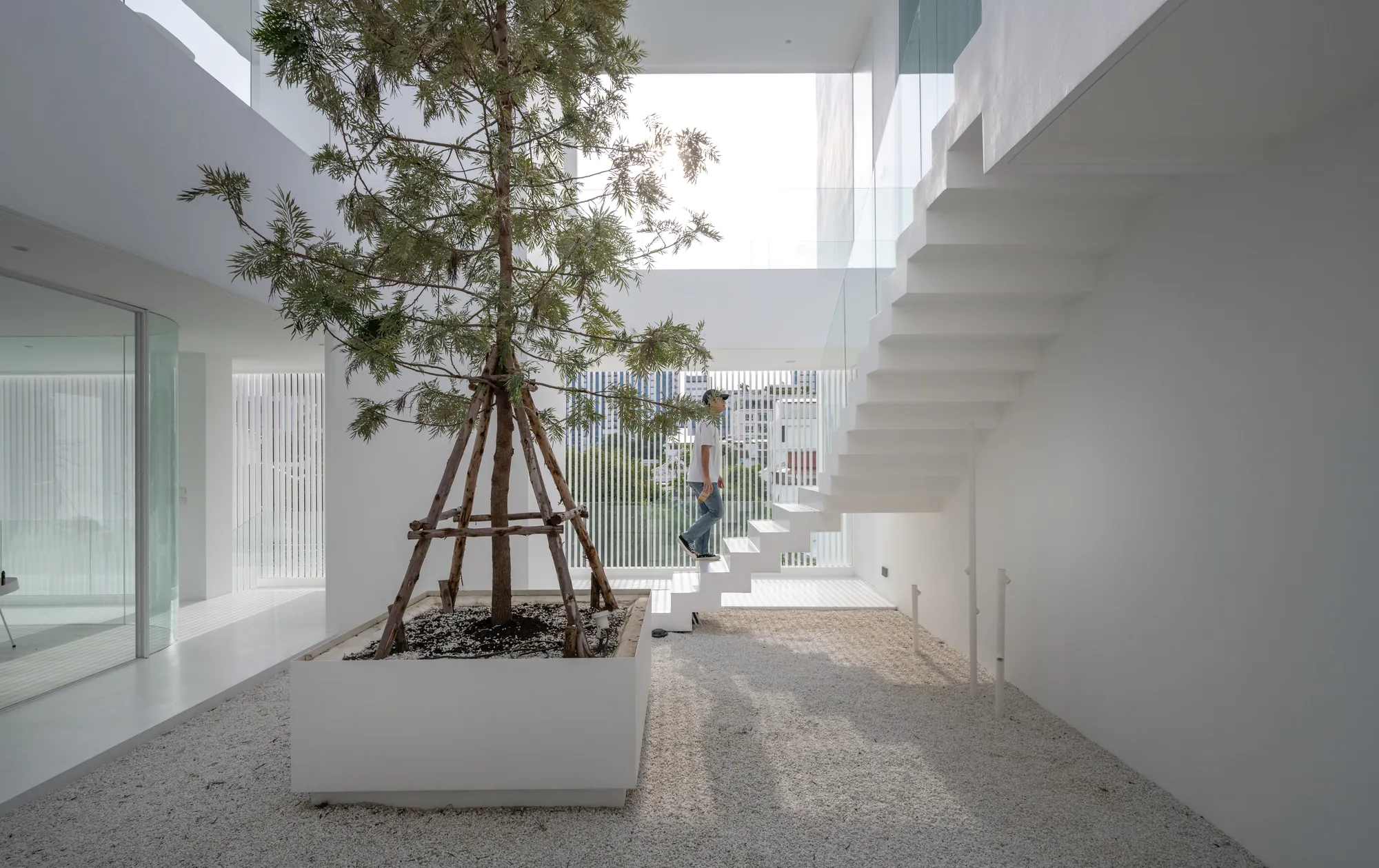 The third level will be a private space for the owner, serving as the main living area, complete with a miniature courtyard. This yard is also seamlessly connected to the fourth level.