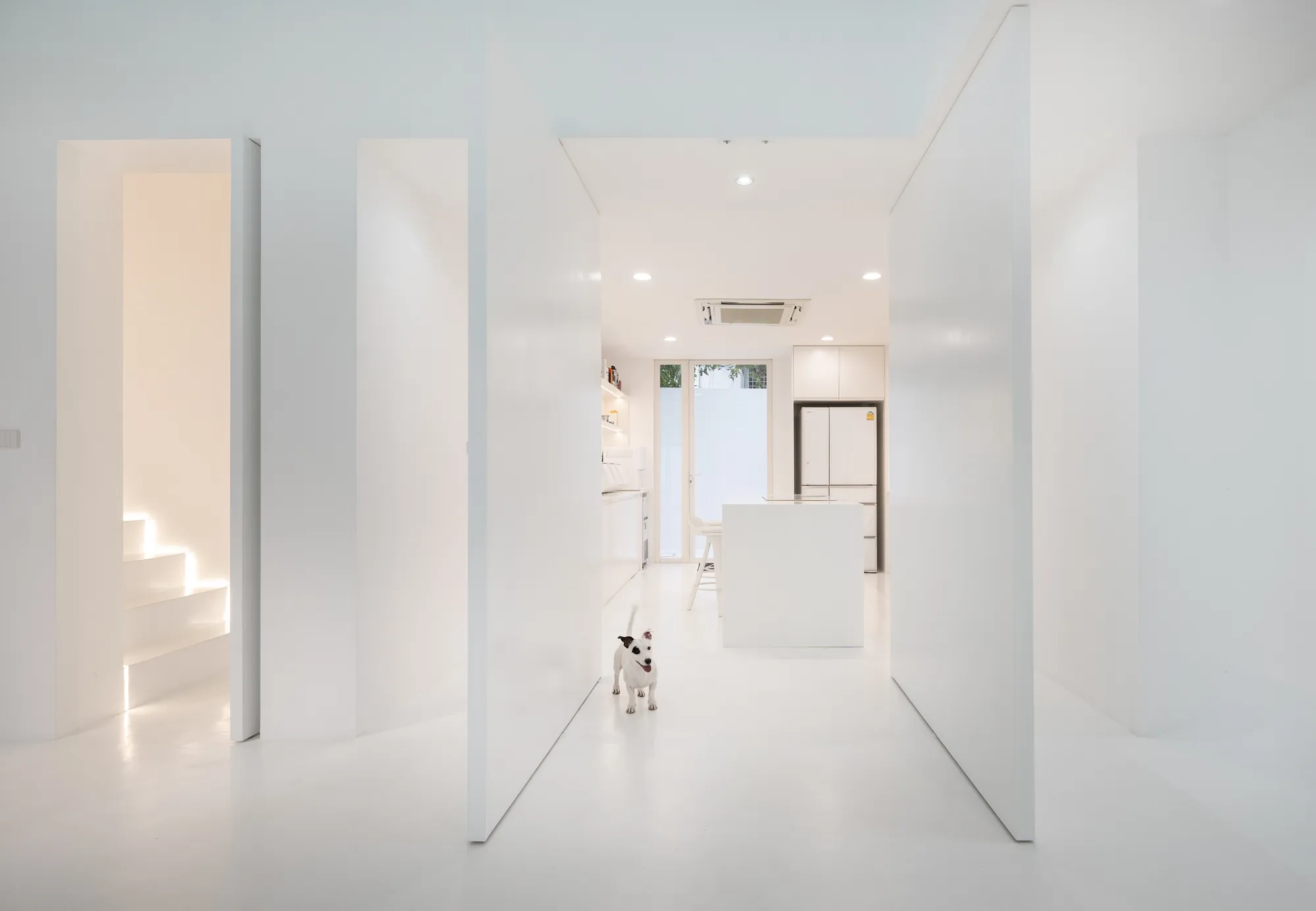 The circulation for both public and private will be separated yet seamlessly connected. So, our design intends to use no-handle doors in order to blend in with the walls. Allowing only people inside to know which area of the house will be connected behind the wall.