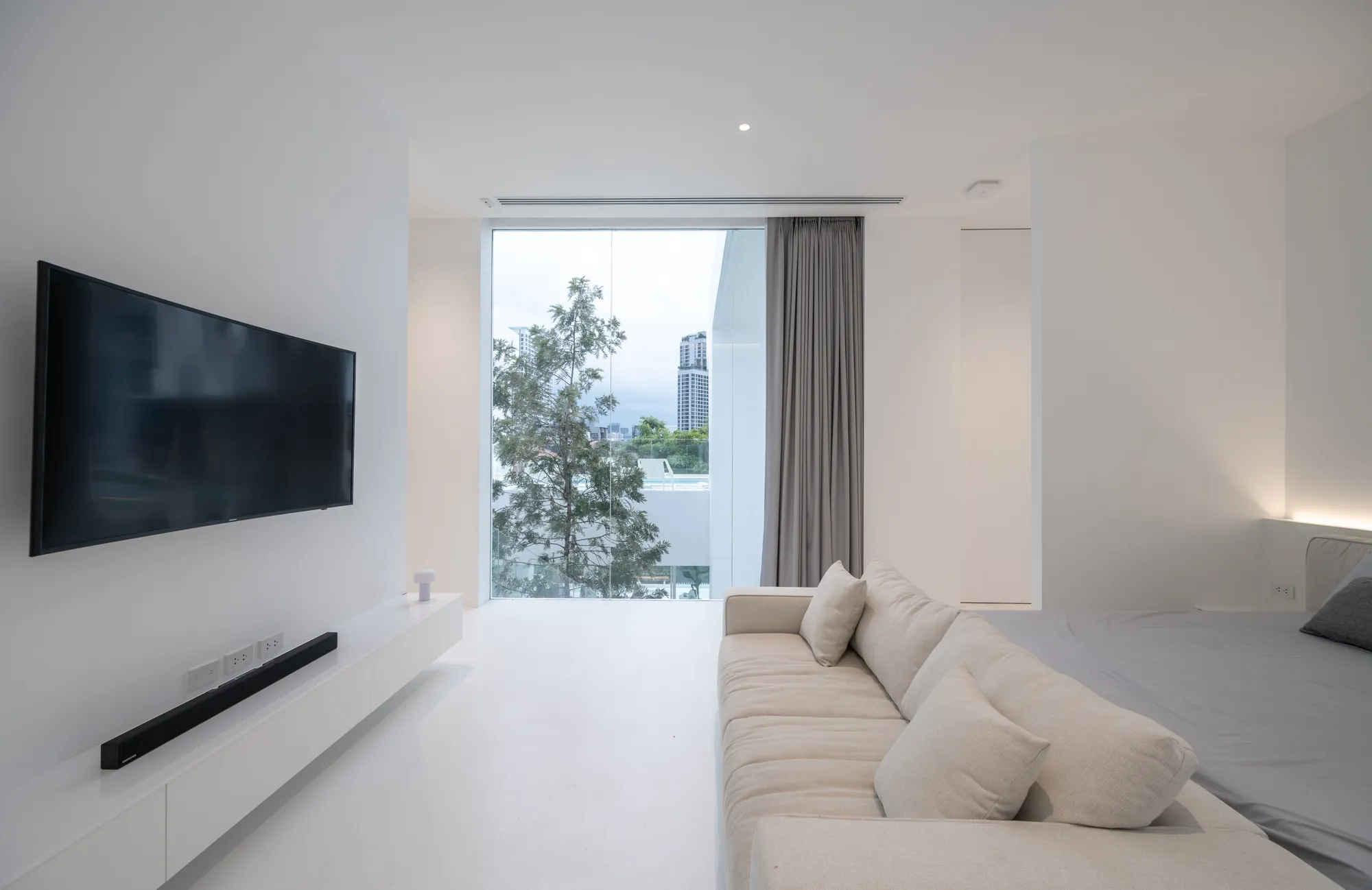 The top floor reveals itself as a private penthouse-style. From the master bedroom, views of the tree’s crown are breathtaking. Further, a serene poolside relaxation offers the home’s most majestic views—an open expanse that captures the city scene in the golden hues of the sunset.