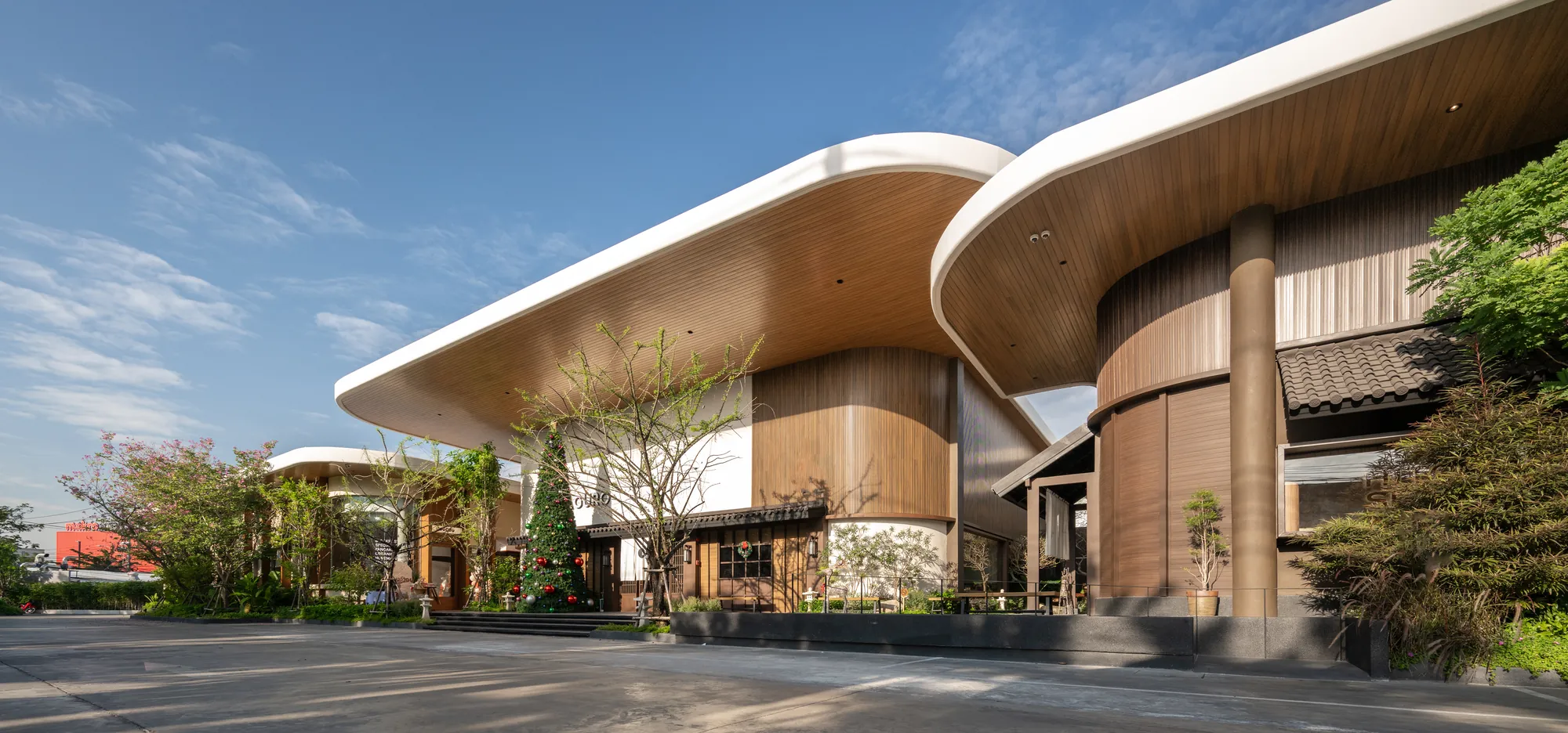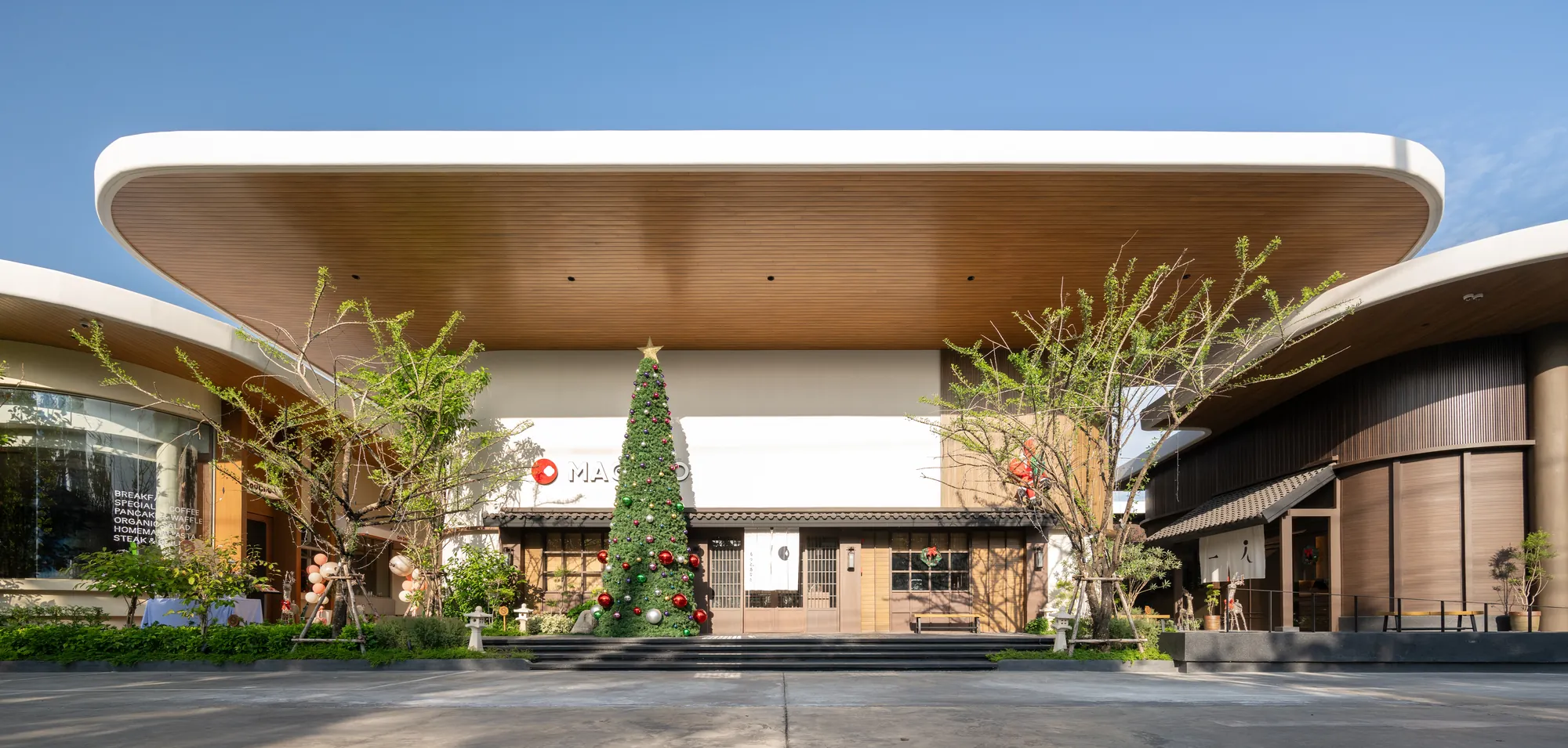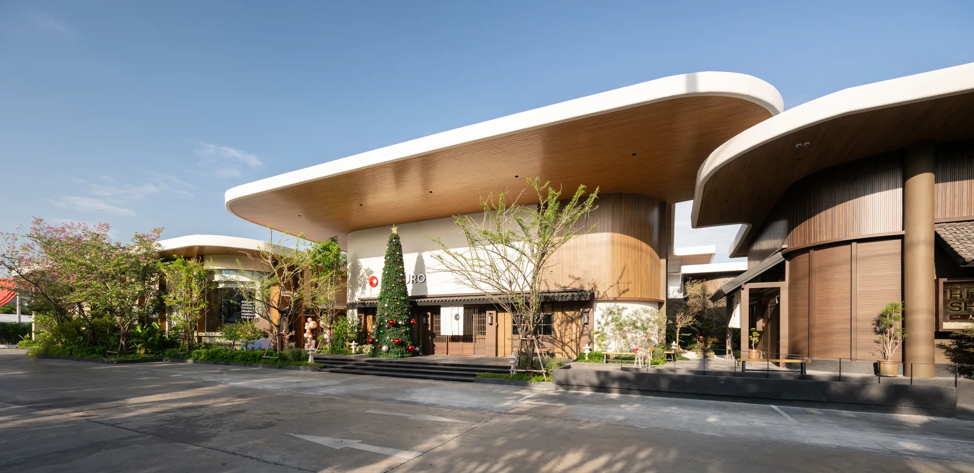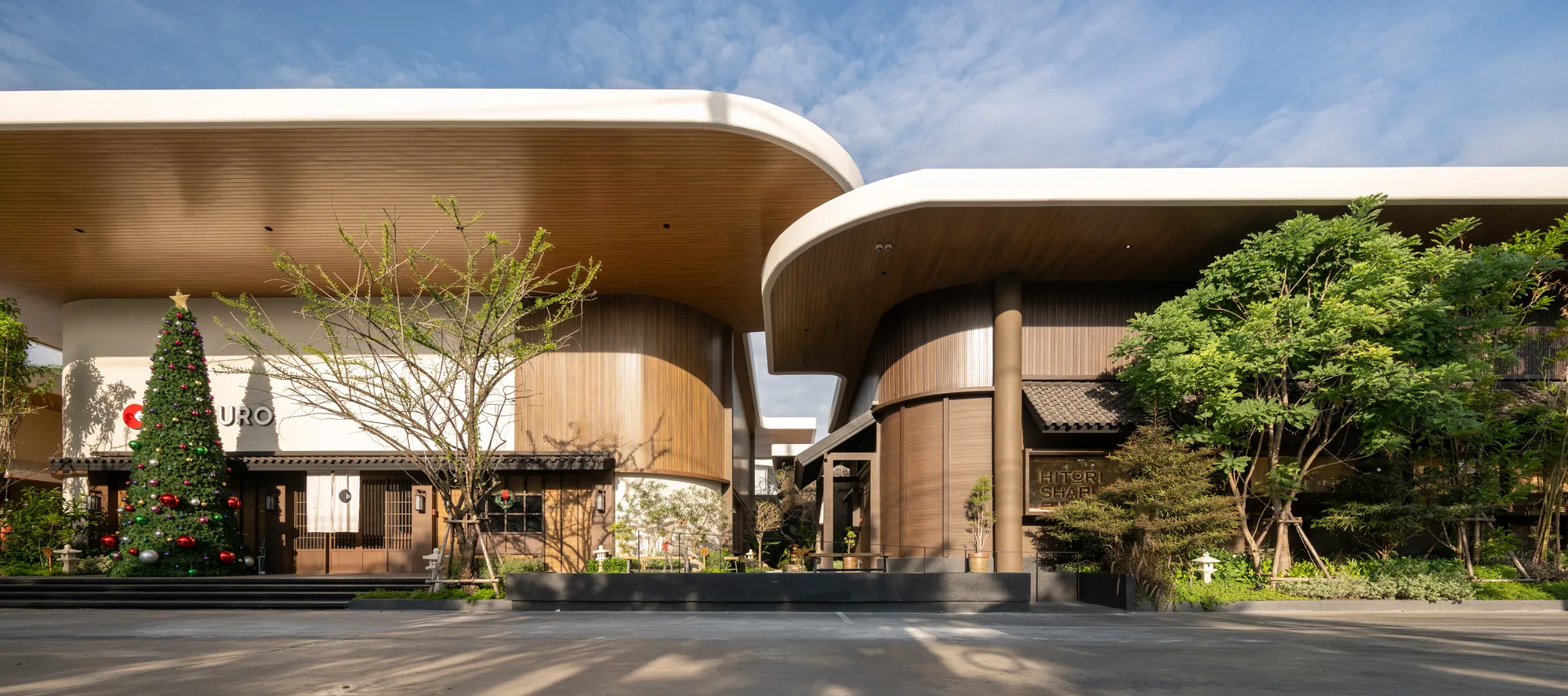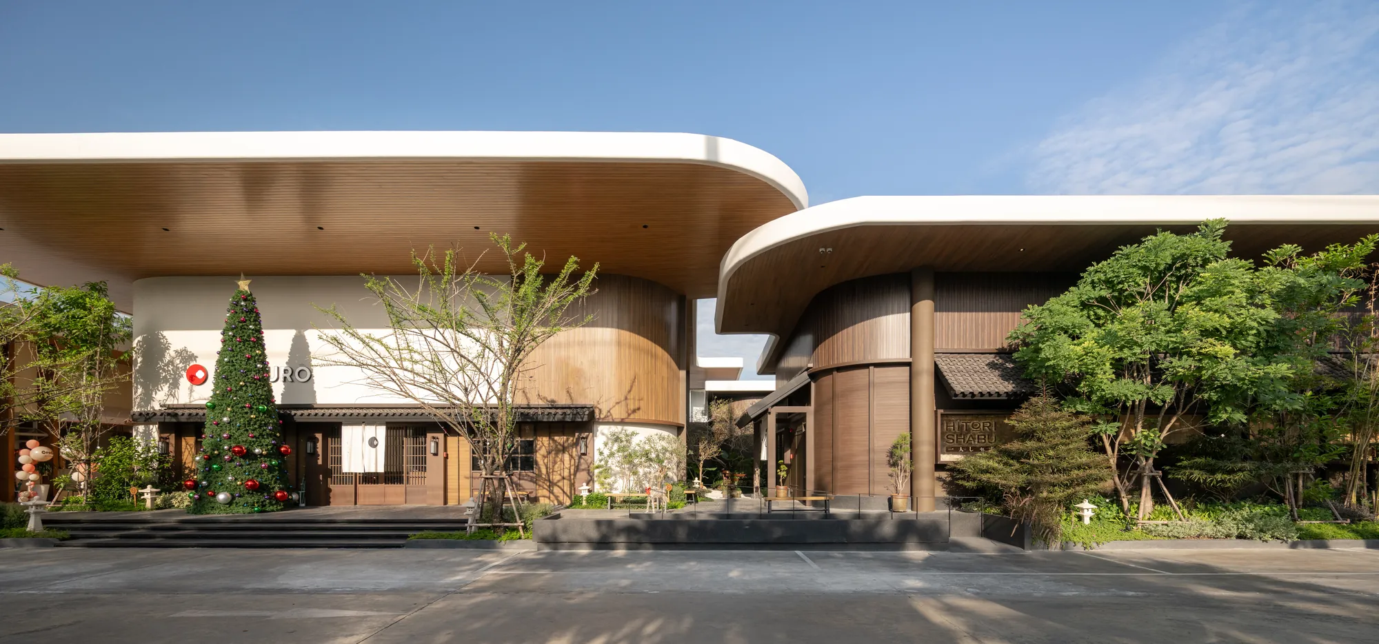 Situated on a uniquely triangular site in Pradit Manutham, The Flavorhood is envisioned as a new food destination that brings together three dining concepts—Maguro, Hitori Shabu, and Coucou—into a cohesive yet diverse culinary hub. A key challenge in the design was to craft distinct architectural identities for each restaurant, ranging from traditional to modern, while maintaining visual harmony within a unified design language.