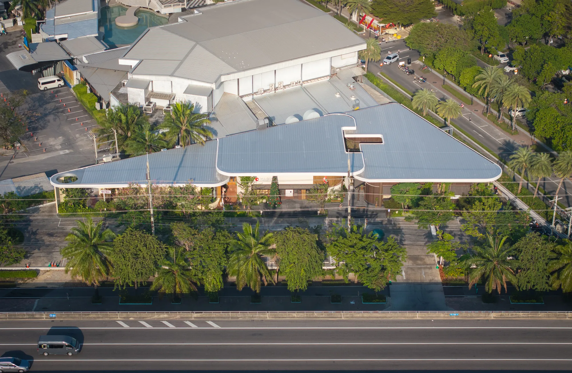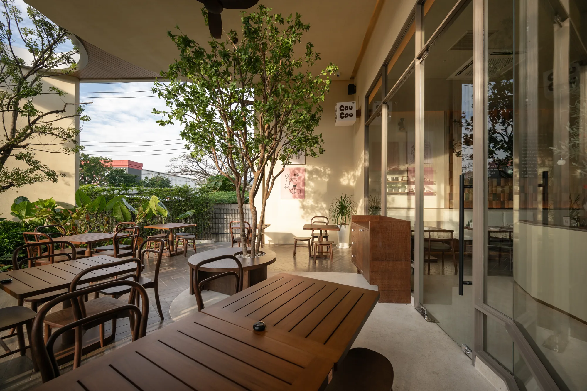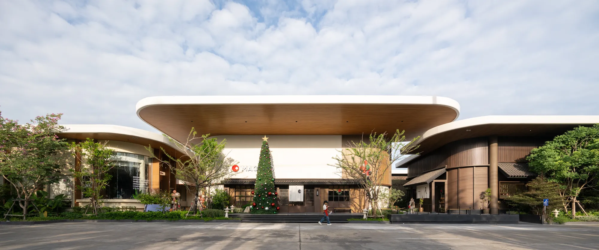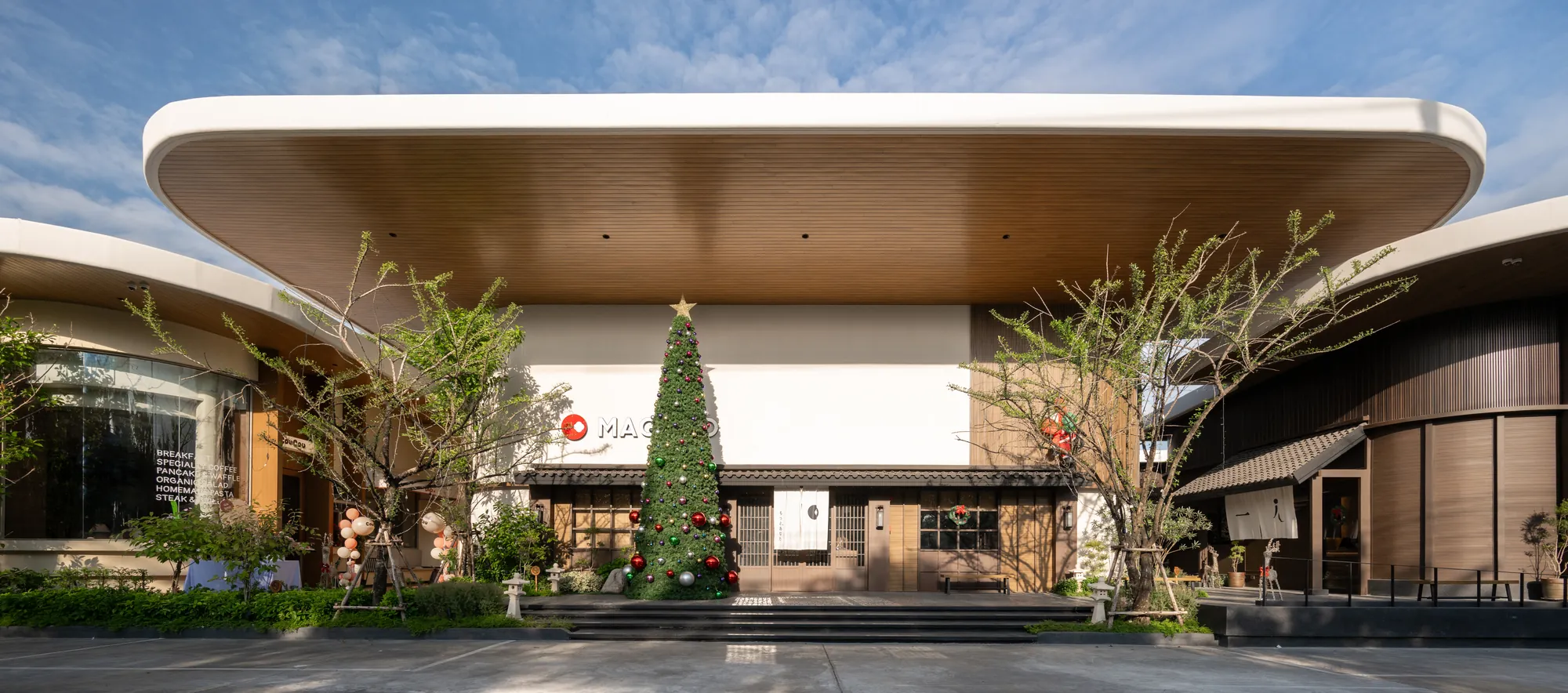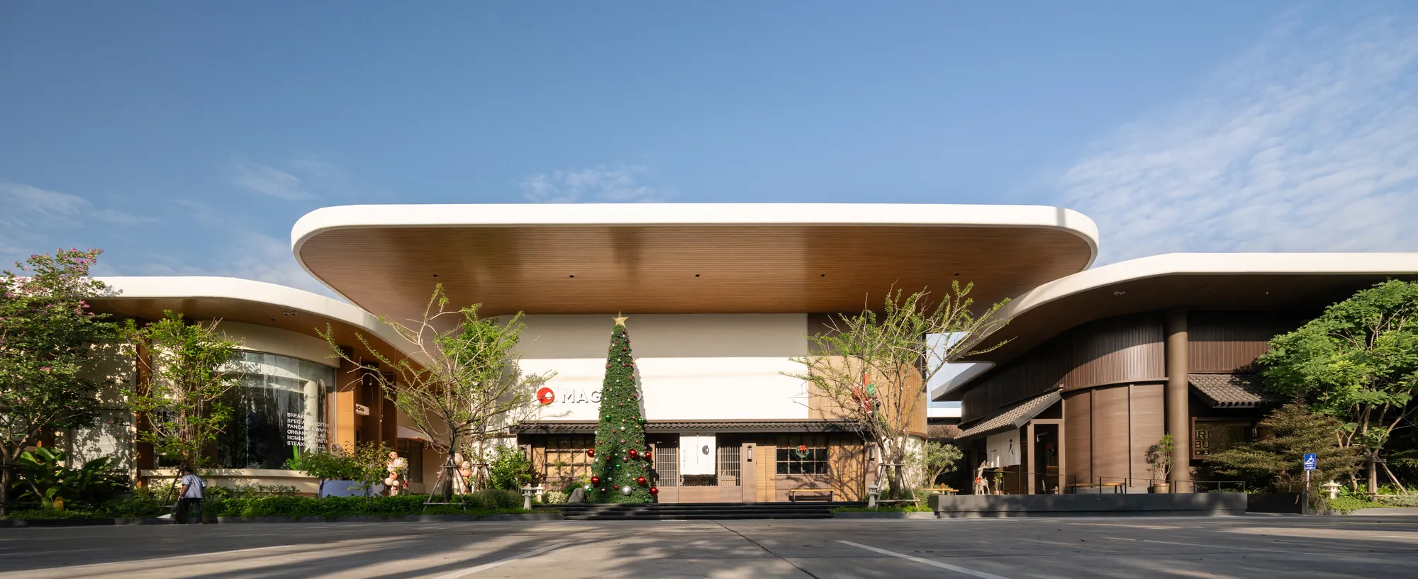 Situated on a uniquely triangular site in Pradit Manutham, The Flavorhood is envisioned as a new food destination that brings together three dining concepts—Maguro, Hitori Shabu, and Coucou—into a cohesive yet diverse culinary hub. A key challenge in the design was to craft distinct architectural identities for each restaurant, ranging from traditional to modern, while maintaining visual harmony within a unified design language.