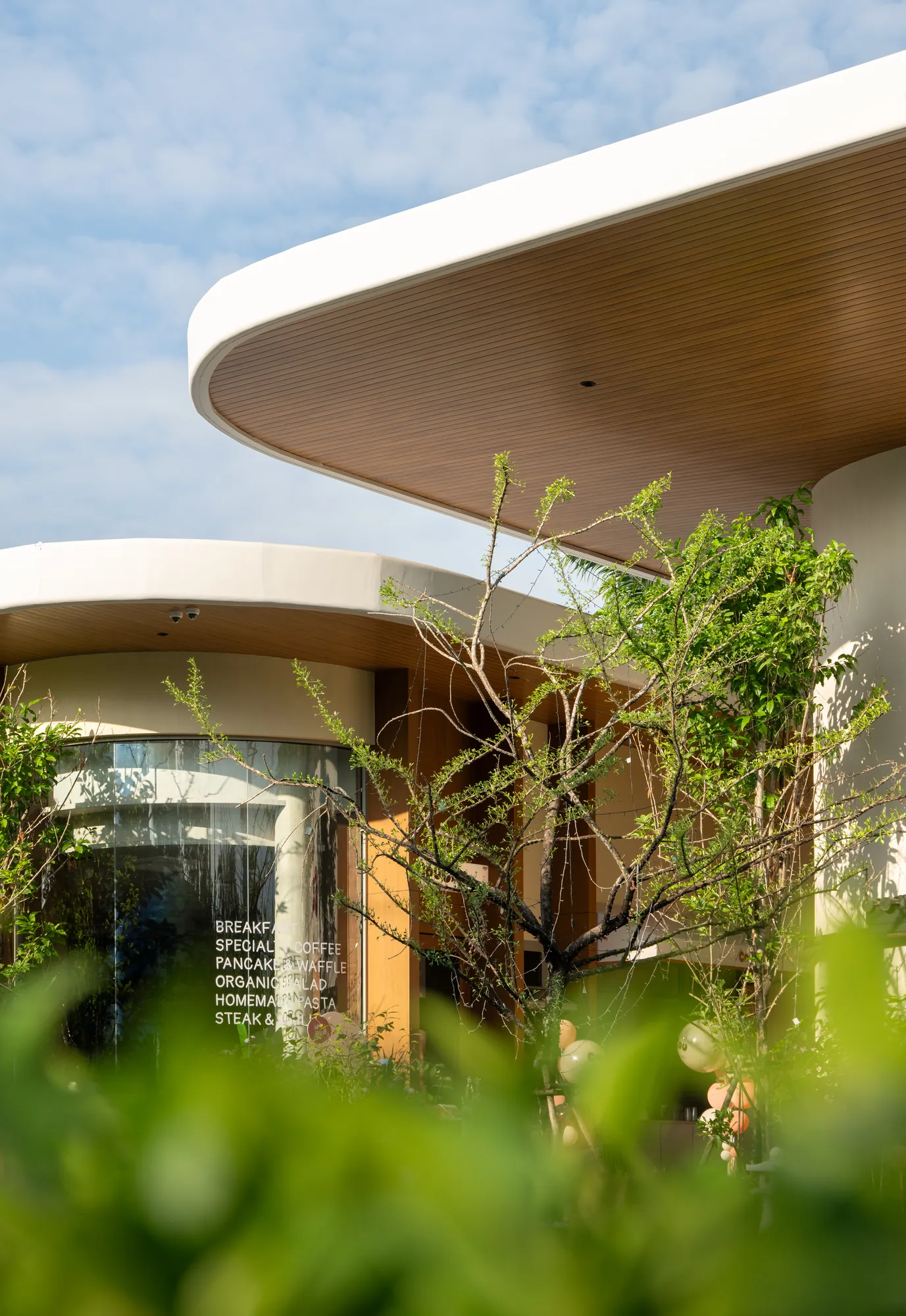 The architectural expression of The Flavorhood is defined by its iconic roof forms, designed as a signature visual element of the project. Clean, minimal lines and soft curves create a sense of fluidity, while intentional variations in height and spacing between structures ensure a balanced proportion, enhancing openness and connectivity with the natural surroundings.